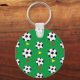 Soccer Ball keychain designed by Nisha Prabhu. This soccer ball themed keychain is just what you need to express your love for soccer. The front and back features a large soccer balls with red and yellow flags on green background. Sports gifts for soccer coach, soccer team, soccer fans, soccer player, soccer lover.