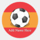 A soccer ball on red and orange background. Custom stickers. Edit name to customise.