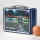 This is a standard metal lunchbox that appears to work just fine. We designed this box ourselves with an uploaded photo and custom text on the front and back. It looks absolutely beautiful except the front of the lunchbox is not centered like it shows in the photo. The print borders don't align with the inset flat part of the box where the preview photo online showed it perfectly centered in there. The back looks nice and centered though.
