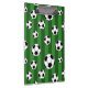 This fun sports equipment pattern has soccer balls on a green field striped background. The athletic gear design makes a fun birthday, Father's Day, Christmas, or other holiday gift for a proud soccer dad or team coach.