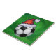 Festive Soccer Ball in a Santa Hat on Green ornaments, gifts, and fun holiday decorations feature our original art of a black and white soccer ball all decked out for the holidays wearing a red Santa hat against a green background with our dry brush texture. This fun holiday decorated sports ball is perfect for anyone who loves sports and decorating for the holidays. It's all fun and games at ITD Sports Centre.
