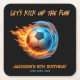 This design features an Soccer birthday theme "Let's Kick Up The Fun" with a unique flamed soccer ball illustration on a black background. Perfect for sporty little athletes and soccer enthusiast's birthday. This product can be easily personalized with your event details. For more matching products feel free to message me on Zazzle.
