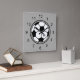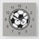 Sports themed wall clock printed in black and white accents with a soccer ball in the centre. Your choice of square or round. Change the hands' and background colour if desired.. Great for a kid's or teen's room or the man cave.