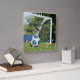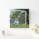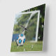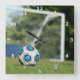 The blue and white soccer ball on grass is waiting to be kicked to score. The high resolution photograph creates an interesting soccer statement for the soccer lover. Personalise by adding the players name. Font can be changed by size, style, colour or location.