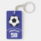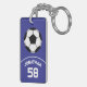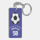 Soccer Ball with Name and Jersey Number Blue Key Ring