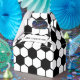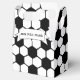 Soccer ball pattern in black and white. Geometric minimalist design. Favour boxes for sports fans. Edit name to customise. Party decor idea.