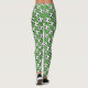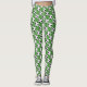 Leggings designed with soccer balls on a green background.