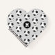 This fun soccer themed heart-shaped notebook features an pattern of soccer balls with black and white panels on a light grey background - customise her monogram on a coordinating black circle pendant - by katz_d_zynes