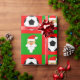 Soccer Balls & Santa Clause Red & Green Christmas Wrapping Paper