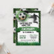 Get ready to score big with this soccer-themed birthday party invitation! Featuring a vibrant green field design, it’s perfect for young athletes and soccer fans alike. Personalise all the party details to make sure your guests are ready to join the action. Whether you're hosting a friendly match or just a fun celebration, this invite will have everyone excited to kick off the festivities. Time to lace up and celebrate in style—goal guaranteed!