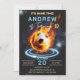 This invitation is ideal for inviting your guests featuring an image of a football engulfed in flames, hovering above a glowing blue ring, with a dark background and scattered white sparks.