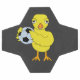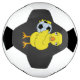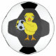 A yellow chick holding a soccer ball is a humourous sport design for back to school, birthdays and holidays.