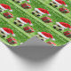 Soccer Christmas Holiday with Santa hat on green Wrapping Paper