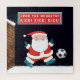 Creative soccer Christmas holiday puzzle for soccer player, coach or team sports fan featuring funny Santa Claus playing soccer upon the housetop.