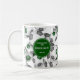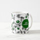 This soccer team colours coffee mug features a bunch of varied size soccer balls arranged in a random, 3-dimensional-look pattern - the soccer balls' typically black panels have been recolored green & grey - customise the coach's name on one side of the mug and the team's name, school name and sports season/year on the other - by katz _d_zynes