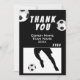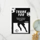 Soccer / Football Thank you Coach Card. Soccer thank you coach card with thank you text, coach name, team name, year, your name and soccer balls. The card has a black and white silhouette image of a soccer player in action. Personalise the card with your text.