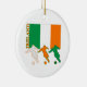Three Irish soccer players in silhouette play in front of the Irish flag.