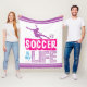 Colourful girl's soccer fleece blanket with the text, "SOCCER is my Life". It has a soccer playing girl silhouette kicking a soccer ball above the text.