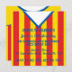 This jersey's is in red and yellow vertical stripes with blue trim and collar.
