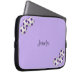 This laptop computer sleeve is decorated with a large purple and white soccer ball on a light purple background, and personalised with name or other text. It's easy to modify or delete example text. What a wonderful way to protect your laptop. Wonderful gift for soccer players, fans, or coaches. All Rights Reserved © 2014 Alan & Marcia Socolik.