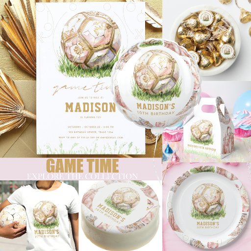 Soccer Luxury Girl Birthday Pink Gold design. Matching products can be found in Luxury Soccer Birthday collection.