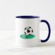 Cute cartoon soccer ball playing football and kicking a smaller ball. Image available on various gifts and products. Mugs.