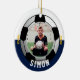 Celebrate your child's athletic triumphs in youth league, college or high school soccer with this Soccer Navy White Team Colours Ornament. Personalise with your child's photo, name and the year. A great gift idea for Grandma and Grandpa.