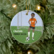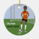 Celebrate the latest and best soccer player with this keepsake ornament. Customise to fit your athlete's information. The name, team and player details are included as a template or delete the text if not needed. This design does not look good on the smaller, one sided ornaments; the details will not show up and the font will look too small. If help is needed with personalising please contact the designer. Background and text colours can be changed if desired. Requests for specific colours, uniform styles, skin tones or hair colour are welcome if you contact the designer - Night Owl's Menagerie, original: 2019.
