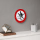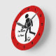 Soccer player and ball custom wall clock design featuring a black silhouette of a soccer player ready to kick his ball and your text on white background with red border. The perfect gift for the soccer –European football- player or soccer lover in your life. Some elements courtesy of vectorportal.com.