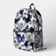 This cool soccer backpack features realistic, varied size blue, grey and white soccer balls turned every which way in a 3D-look pattern on a black background - customise with the soccer player's monogram - by katz_d_zynes