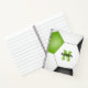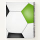 This cool soccer themed spiral notebook features the image of a simple, abstractly oversized soccer ball with lime green, black and white panels - athlete's name and varsity letter, monogram or jersey number are customisable - by katz_d_zynes