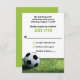 This smaller-sized soccer-themed Bar Mitzvah RSVP card coordinates with the Night Stadium Bar Mitzvah invitation. It has a band of green grass along the bottom with a black and white soccer ball in the lower left-hand corner. This soccer reply card has a mix of green and black lettering in fonts that match the invitation and the backside is green with a pale Star of David on it with an additional text box in case you need to add any other information. Delete the words there if you don't need them.