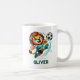 This fun and energetic personalised kids' mug features a joyful lion playing soccer. The lion sports a playful soccer jersey and shorts in vibrant reds and greens.
