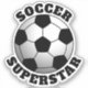A sporty sticker with a soccer ball and the phrase 'Soccer Superstar' curved around the ball. Great gift idea for your soccer player.