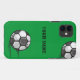 iPhone 5 cases for soccer fans. 2 black and white soccer ball designs on a green background are featured on these iPhone cases that can be personalised by you. Edit ALL text fields to make your iPhone 5 cases unique.