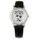 SOCCER WATCHING is written in a sports font with a drawing of a soccer ball underneath that. Then "TIME" is written under the soccer ball picture. This watch is designed for women and comes with a classic, black band. It is also available in other styles. Perfect for US soccer fans!