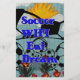 The artwork features the words "Soccer," "WIFI," "Eat," and "Dream" stacked vertically in a bold, blue, slightly stylised font. These words are the central focus and are positioned against a multi-layered and somewhat whimsical background. The background includes outlines of several black and white soccer balls of varying sizes, a radiant yellow sunburst at the top, and colourful floral patterns at the bottom. The overall colour palette is a mix of blues, yellows, reds, and greens on a textured, light blue or grey base. The different elements are layered, creating a visually busy and playful composition.