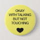 Social distancing colour-coded yellow button to help you feel safe and comfortable with your social interactions and let others know what level of social distancing you are comfortable with. The customisable text reads "OKAY WITH TALKING BUT NOT TOUCHING".