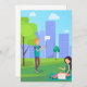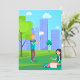 People engage in social media in a city park. This design looks really effective on this Invitations