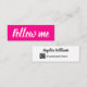 Instagram social media minimalist, modern, simple, professional, trendy bright pink business card with the text "follow me" in handwritten font.