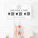 Social media business banner featuring your company logo, QR codes for customers to follow you on social media platforms, and contact details.