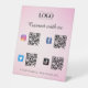 Social Media Qr Code Logo Twitter Facebook Pink Pedestal Sign