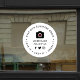 Simple stylish custom white "Love it snap it share it" to "Help our business grow" vinyl window cling decal design in modern minimalist typography. The design features social media icons for facebook, twitter and instagram and a cute camera with red heart icon. The text can easily be personalized including your social media username and 'follow us' text which you could change to 'tag us'. The perfect template for your small business to encourage customers to promote you on social media!