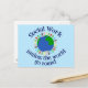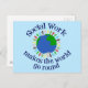 A cute social worker postcard that features people holding hands across the planet Earth in blue and green. A beautiful way to show how social work heals and helps people. Social Work Makes the World Go Round and be a better place.