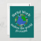 A cute social worker gift that features people holding hands across the planet Earth in blue and green. A beautiful way to show how social work heals and helps people. Social Work Makes the World Go Round and be a better place.