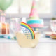 Social workers make the world a better place. Motivational social work wine glass with a beautiful inspirational quote under a cute rainbow in a blue sky. Pretty social services gift.