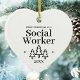 First Christmas as a social worker heart ornament for a coworker, friend, or family member. Elegant porcelain ceramic holiday ornaments in white with black lettering. Featuring Christmas trees and stars.