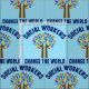 Social Workers Change the World inspirational fabric in pretty blue. A cute motivational social work quote written around a beautiful tree of rainbow leaves.