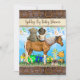 Socially distant, gallop on by mail in gifts virtual boy's baby shower, country and western baby and teddy bear on horse rustic style baby shower invitations. Perfect baby shower invitation for the crazy times we live in. Have the mum to be's friends just drop off gifts on a certain day or mail them to her to celebrate her soon to be bundle of joy!