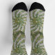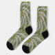 Spiral image in crochet. Pattern has green background with the white spiral. Two spirals on top of each other. Centre circles of green arranged on the shin and top of foot.